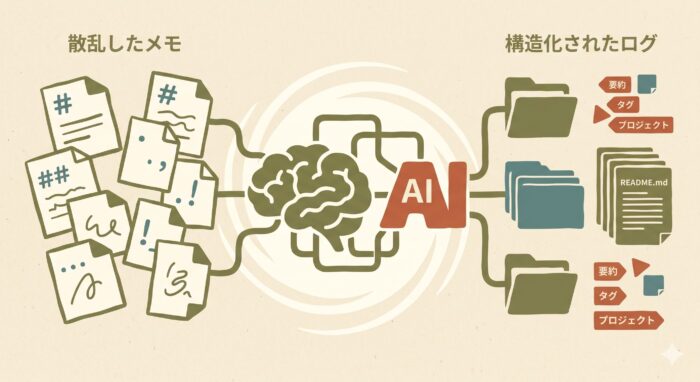 Git(ギット:履歴管理システム)の検索機能とLLMの構造化能力を組み合わせれば、過去の自分は「検索可能なデータ」に変わる。完璧な整理を目指すのではなく、AIに丸投げして、思い出す手間を徹底的に排除する。それが、長く作業を続けるためのコツなんじゃないかと思っている。