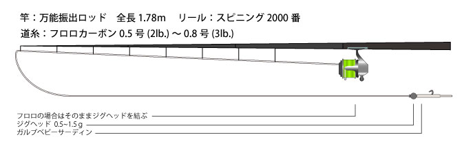 フロロカーボンライン0.5号(2lb.)~0.8号(3lb.)