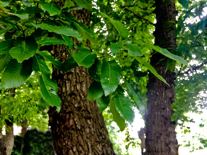 クワガタは樹液の出るクヌギ・コナラ・ヤナギ・ニレ・カシなどの広葉樹にいることが多いです。公園などに行った際には、どのような木が生えているか種類を見てみましょう。あまり木に詳しくない場合にも、クヌギ・コナラ・カシ等のどんぐりの成る木は、クワガタやカブトムシをはじめとした多くの甲虫が集まる木として、とてもわかりやすいでしょう。地面に落ちているどんぐりや葉の形、木の肌を見ることで木の種類を確かめることができます。