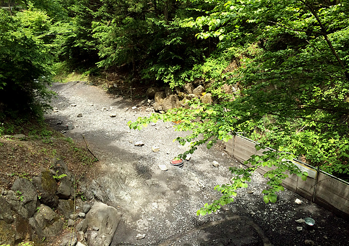 そして、駐車場の目の前に怪しい森の雰囲気漂う入口を発見。どことなく恐竜の匂いが漂う。テンションが上がったまま、怪しい入口を下っていくと、自然のままとまではいかないが、若干安全対策がされた自然溢れる化石発掘体験地が目の前に現れた。