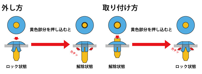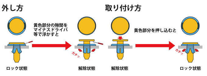クリップ(カウルクリップ・プッシュリベット)の取り外し方